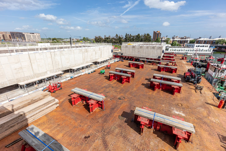 Finishing off each of the hulls is a water level perimeter slab forming a doughnut around the perimeter walls. Each of the concrete elements had a number of cast-in fixings such as anchor bolts, plates and channels to facilitate subsequent connection to follow-on trades including structural steelwork, façade, and timber decking contractors.