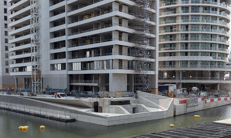 The project based at Wood Wharf, Canary Wharf involved the construction of a semi-submerged abutment, bascule chamber and marine deck.