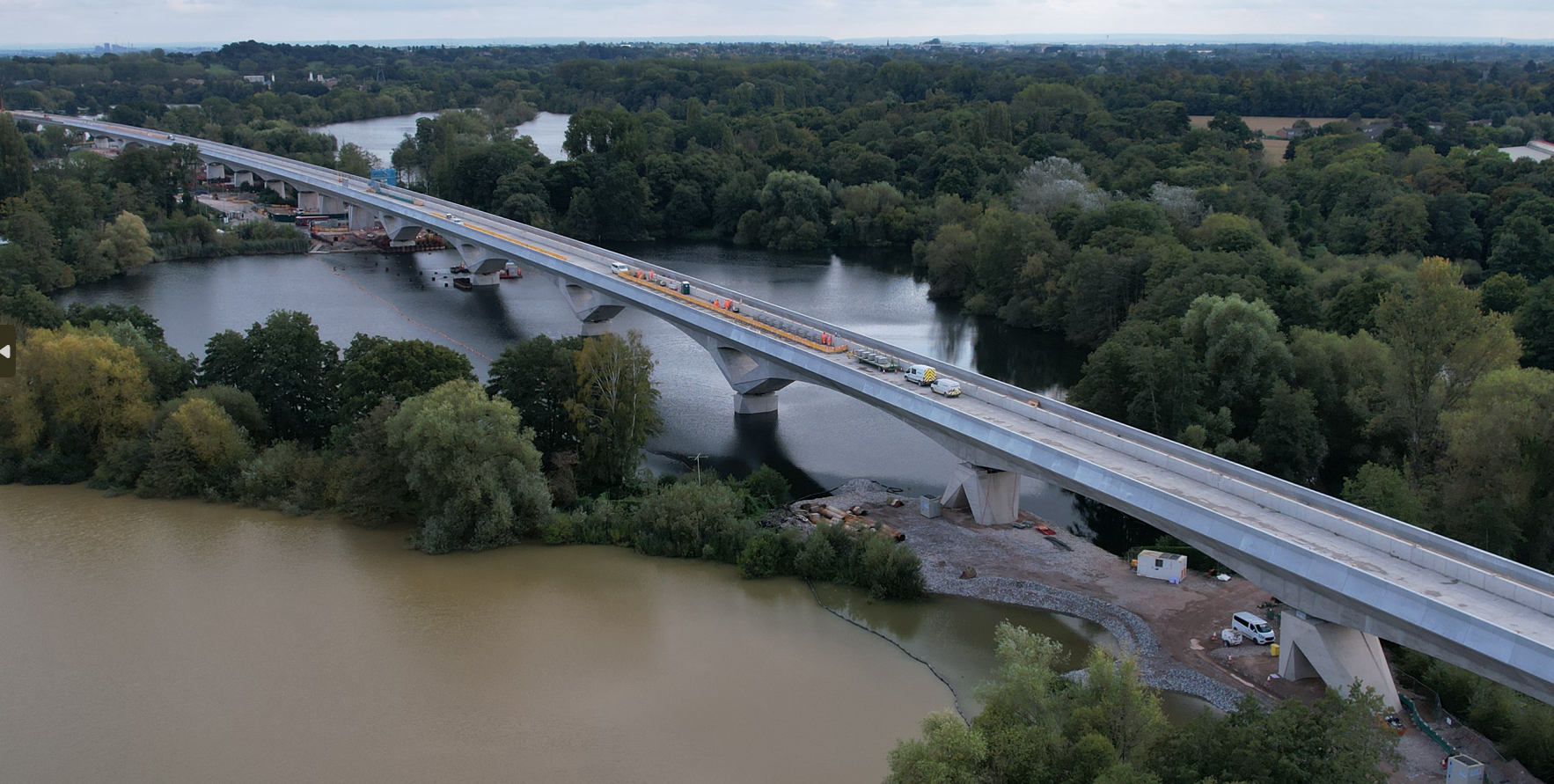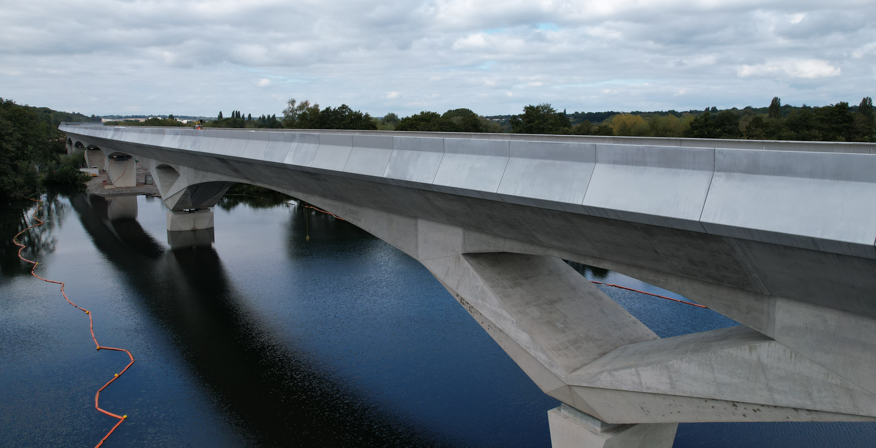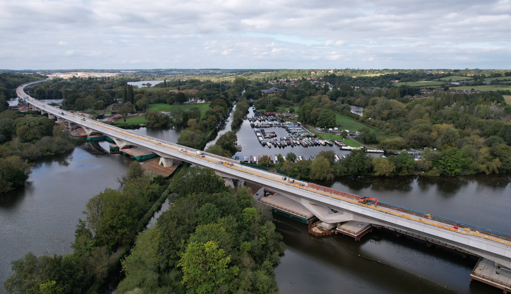 Completed in late 2024, the Colne Valley Viaduct is a bridge, which will carry the High Speed 2 railway over the Colne Valley Regional Park and the Grand Union Canal. With a length of 2.1 miles (3.4 km) and a weight of 116,000 tonnes, it is the largest railway bridge in the UK, as well as one of largest single civil engineering works of this phase of HS2.