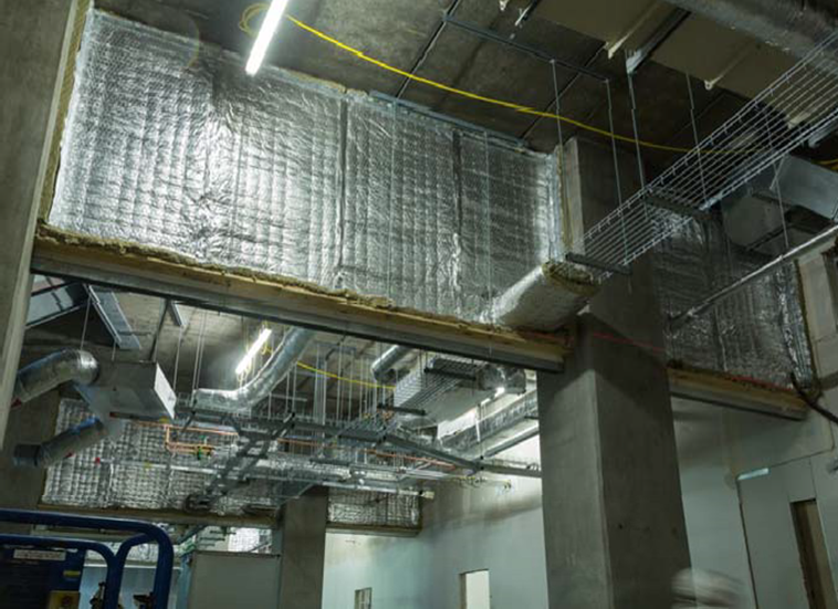 Kilnbridge were appointed to undertake the passive fire protection package for the construction of fire rated walls in a high impact board with services sealed in a fire rated compound and faceted compound seals around the curvature of the ceiling line.