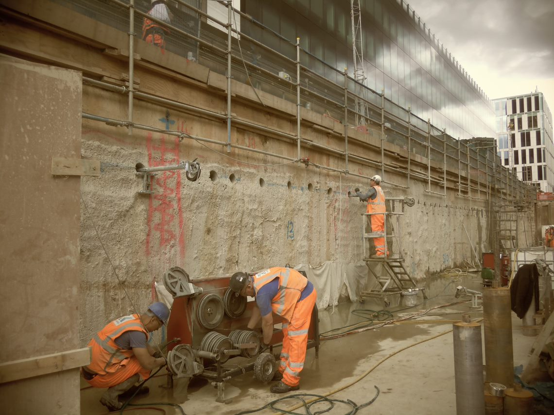 Works on the North diaphragm wall involved diamond drilling and bursting techniques whilst the South diaphragm wall involved plunge wire sawing, wire sawing and track sawing.