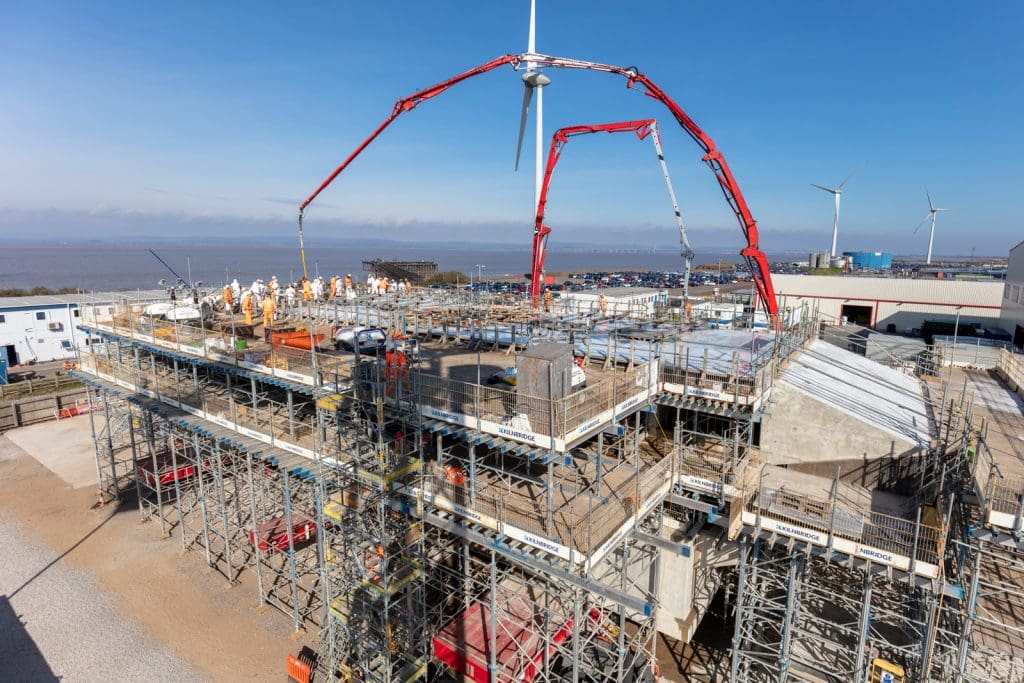 Kilnbridge’s scope entailed the construction of the head structures for the new power station. A vital element of the power station’s cooling system, these were six very technically challenging and densely reinforced nuclear grade concrete structures with extremely condensed and complex reinforcement layouts. The heads, weighing from 3,500 tonnes to 5,000 tonnes, were constructed in Avonmouth docks, 40 miles away from the new power station and adjacent to the aggressive tidal conditions of the Severn Estuary.