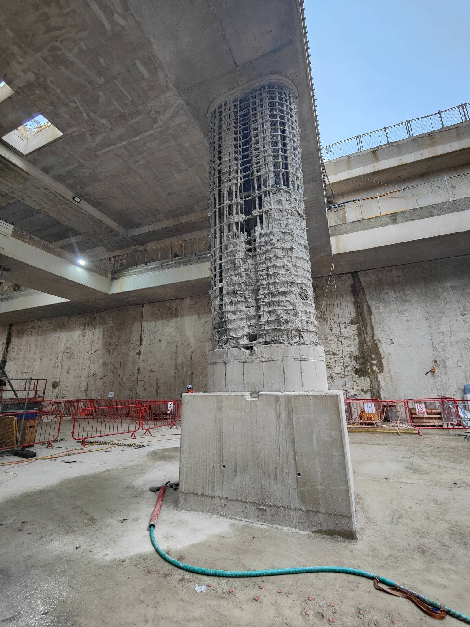 In May 2024, our Concrete Cutting and Controlled Demolition business was contracted to remove defective concrete from within a 1.50m diameter plunge column 4m high. This appointment was due to our use of hydrodemolition techniques and capabilities, allowing for precision targeted removal of concrete with minimal damage to surrounding structural features. The high concentration of reinforcement would have made it difficult to remove the concrete within the centre of the column through any other methodology. Through expert delivery, the reinforcement and couplers were left entirely undamaged.
