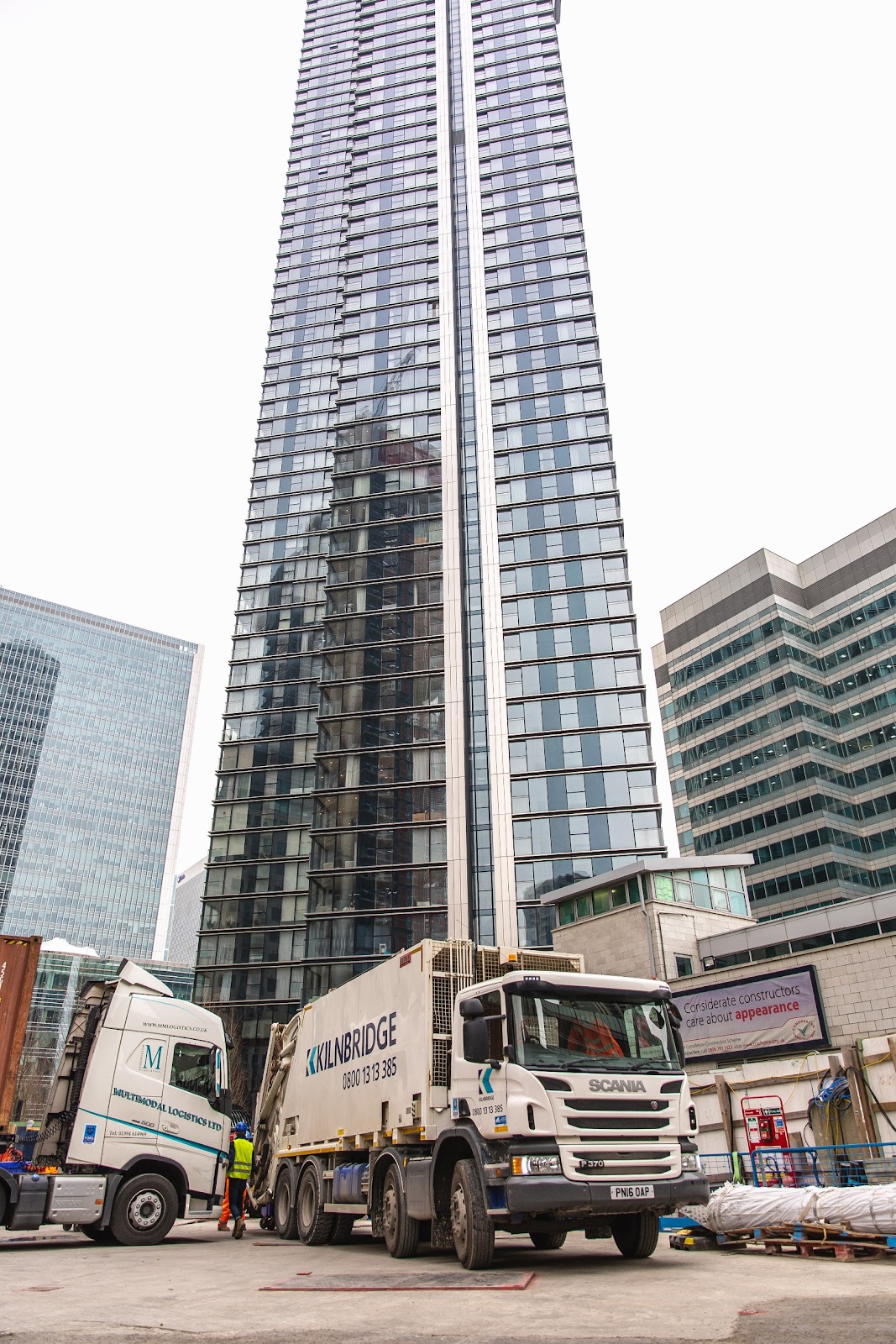 South Quay Plaza is a development in Canary Wharf E14. It is designed by the architect Foster & Partners. The development includes three towers the tallest tower Hampton Tower will be the second tallest residential skyscraper in London. There will be retail spaces cafes and restaurants as part of the development. Kilnbridge offered an on site consultation in conjunction with Focus Group Logistics to ensure that all recycling, sustainability and environmental needs were met on the project.