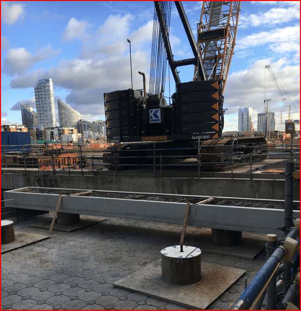 Kilnbridge’s scope also included the installation of precast U-beams, precast planks, precast split edge beams and in-situ toppings to tie all elements together using a 160 tonne crawler crane tracked on a fabricated steel grillage. The advantage of the grillage system was to avoid using a crane on a barge and four support vessels which would have been required in that situation. The adopted Kilnbridge cranage solution had a far lesser environmental impact with reduced CO2 emissions.